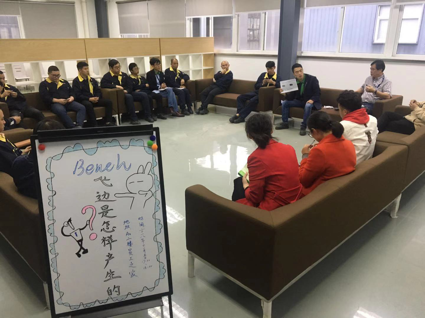 2018年11月5日星期一下午17:00-18:00模具生产中心Bench部门邀请到技术顾问Mr.Kevin;项目部李刚先生、郑作凯先生;模具设计部罗旭先生;加工中心李昌利先生、周啸林先生;注塑部试模郭燕飞先生一起参加关于模具飞边是怎样产生的?这个议题大家展开激烈讨论。